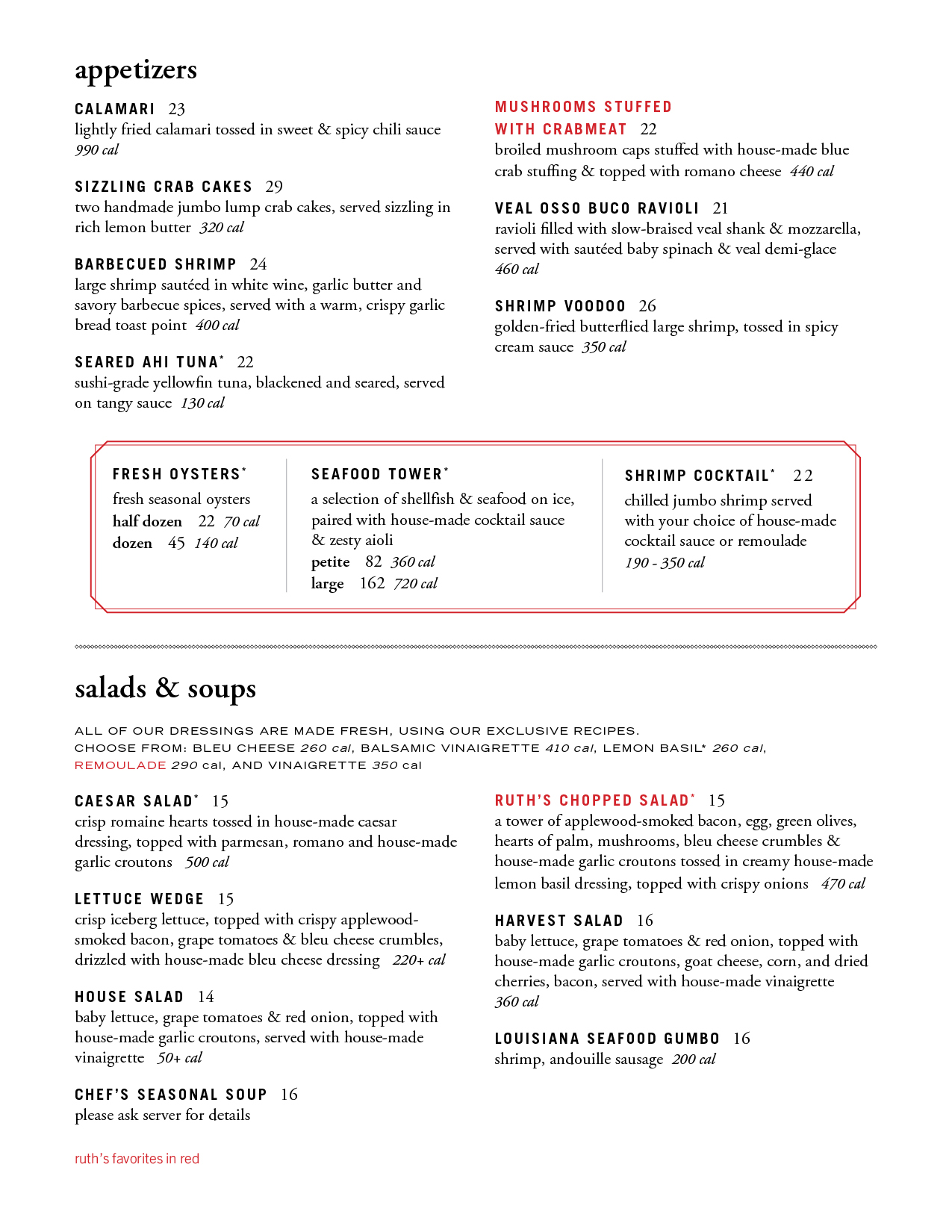 From appetizer to dessert, the menu at Ruth’s Chris Steak House is carefully curated to ensure your last bite is as good as your first.